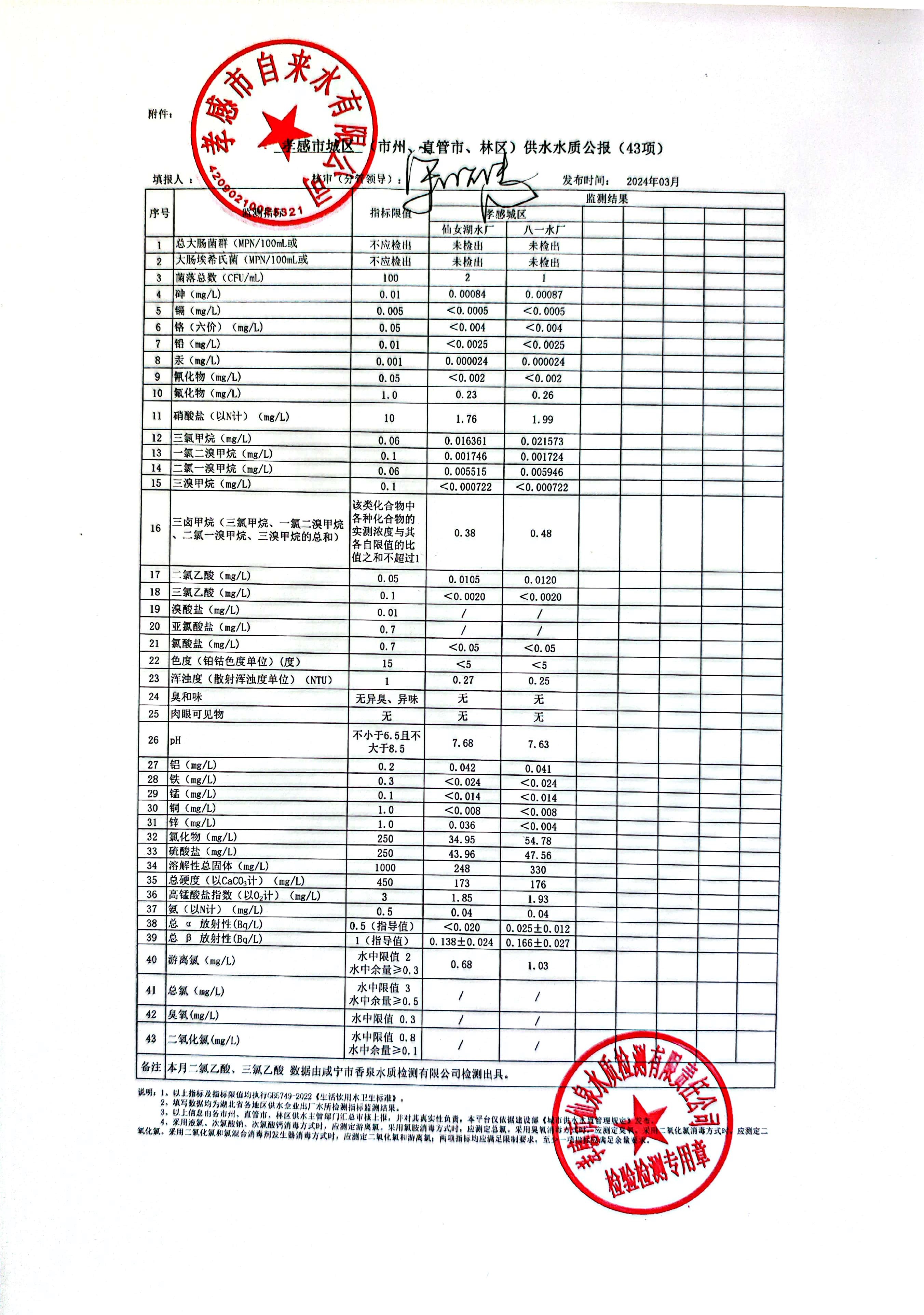 2024年3月水質(zhì)報告