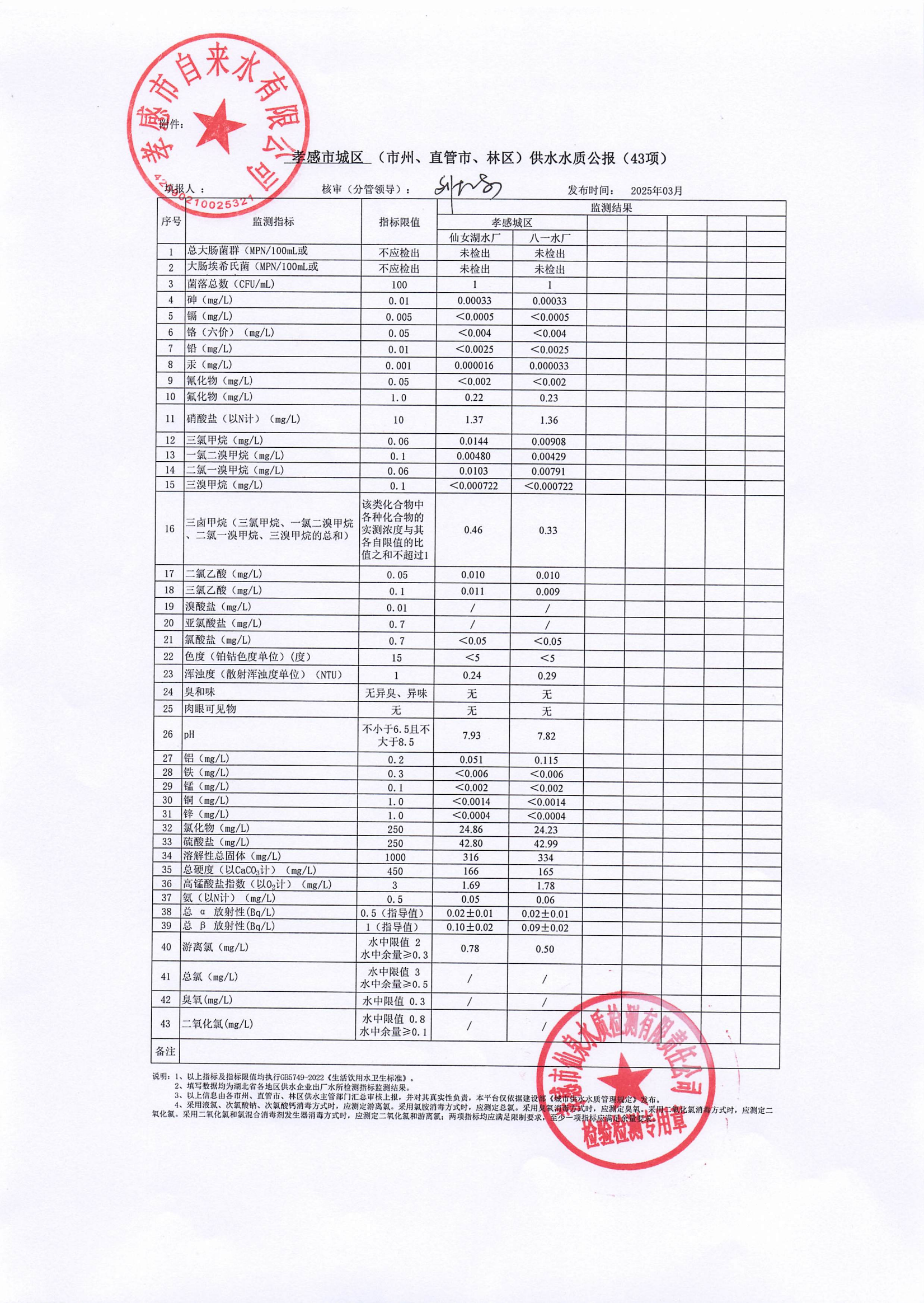 2025年3月水質(zhì)報(bào)告