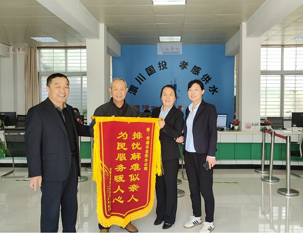 4月14日上午,槐蔭小區的余先生將一面繡有“排憂解難似親人 為民服務暖人心”的錦旗贈予自來水公司,并對自來水公司員工的辛勤工作表示了衷心的感謝。
