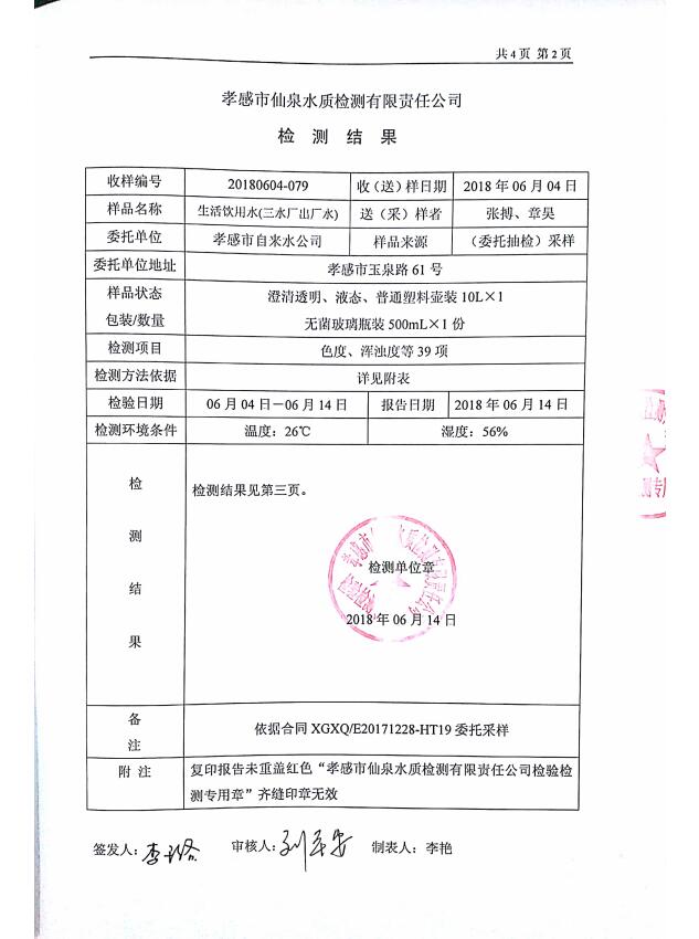 2018年6月水質(zhì)報告