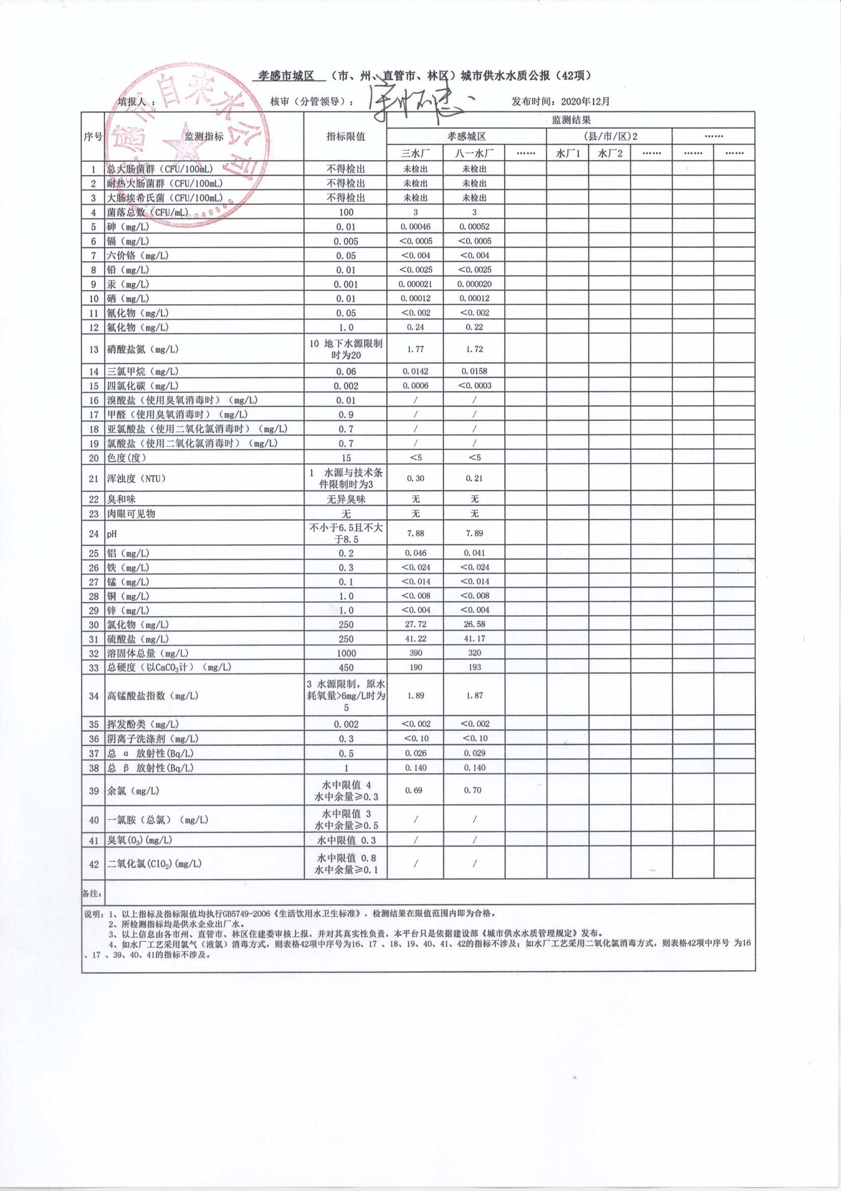 2020年12月水質(zhì)報(bào)告